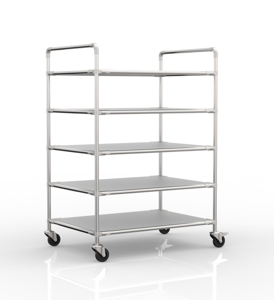 Antistatický policový vozík z trubkového stavebnicového systému je ideální volbou pro manipulaci se zbožím citlivým na celý popis a parametry