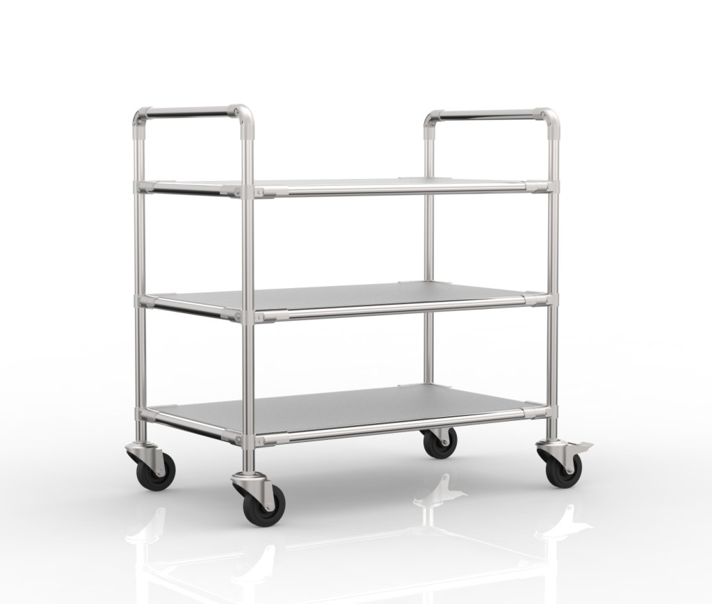 Antistatický policový vozík z trubkového stavebnicového systému je ideální volbou pro manipulaci se zbožím citlivým na elektrostatický výboj. Součástí vozíku je ESD lamino deska o tloušťce 18 mm. Rozměry 964 x 918 x 568 mm, průměr kolečka 100 mm.
