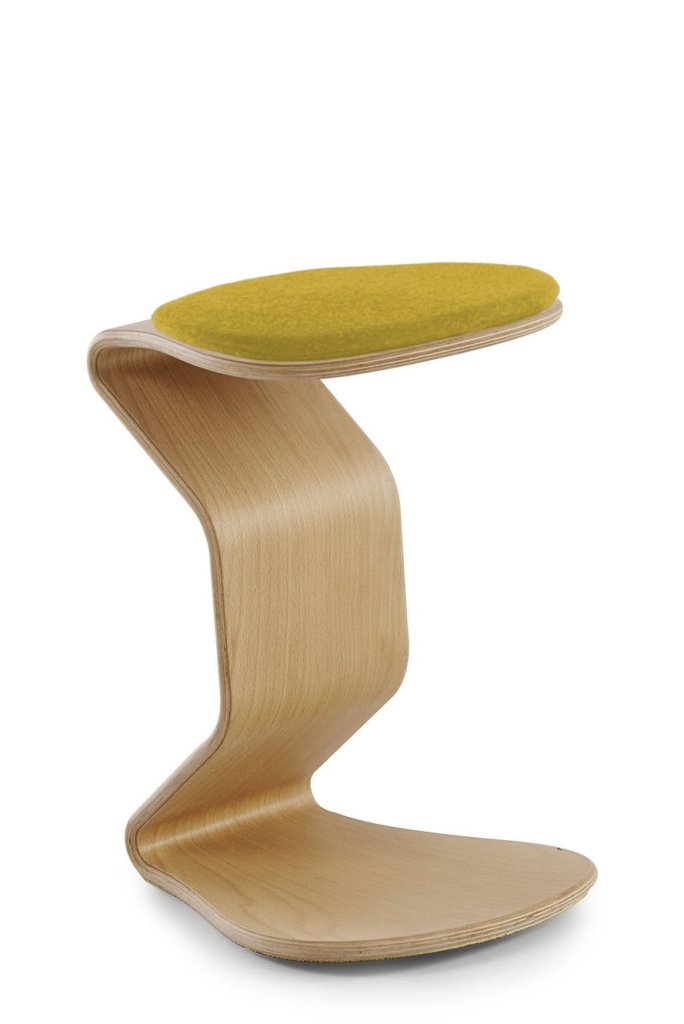 Balanční stolička Ercolino Medium s pevnou výškou 49 cm, vybavena ergonomicky tvarovaným 3D sedákem. Stolička vyrobena z tvarované bukové překližky 14 mm s pohledovými dýhami.