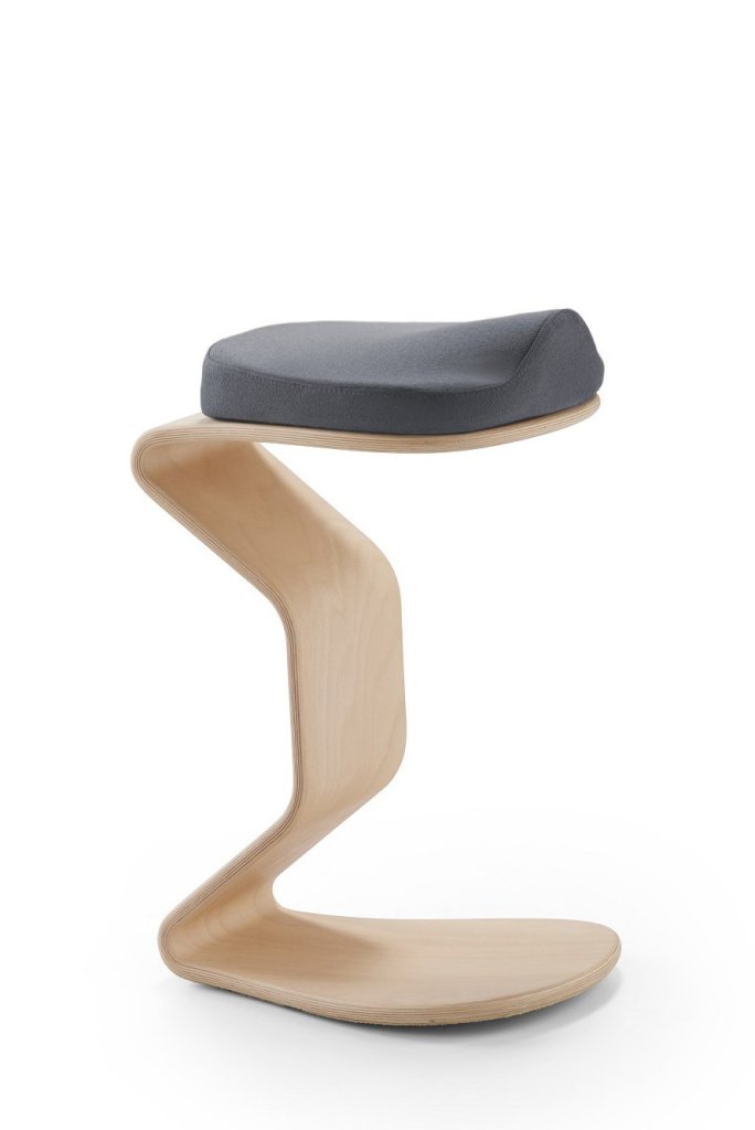 Balanční stolička Ercolino Medium s pevnou výškou 49 cm, vybavena ergonomicky tvarovaným 3D sedákem. Stolička vyrobena z tvarované bukové překližky 14 mm s pohledovými dýhami.