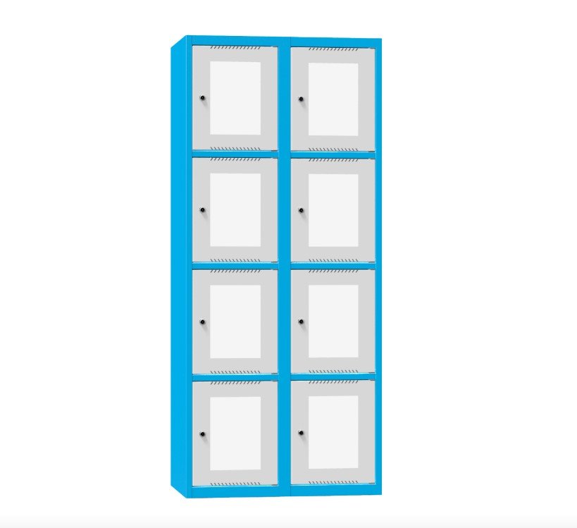 Boxová skříň se dodává se zapojením elektrických komponentů s certifikací elektrické bezpečnosti k okamžitému použití. Skříně jsou dodávány s elektrickými zásuvkami typu E pro Českou republiku. Obsahuje 8 boxů vybevné dvěma elektrickými zásuvkami 230V/16A. Výška 1850 x šířka 800 x hloubka 500 mm. Zamykání cylindrickým nebo mincovním zámkem.
