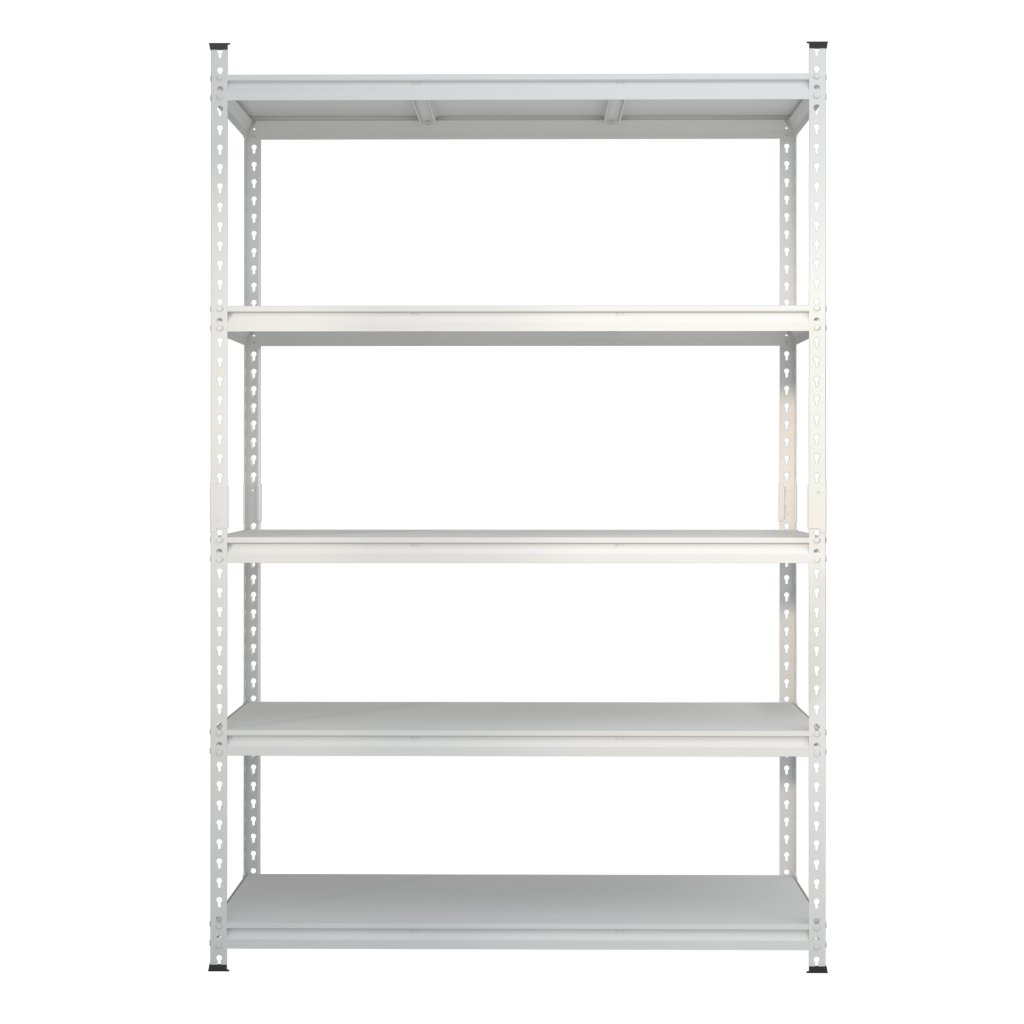 Univerzální celokovový bezšroubový regál vhodný do dílen, skladů, kanceláří, garáží či archívů. Vyroben z kvalitního ocelového plechu, povrchově upraven bílou práškovou barvou. 5x přestavitelná police s výztuhou. Nosnost police 150 kg. Rozměry regálu (v x š x hl.) 1830 x 1200 x 500 mm. Dodáván demontovaný.