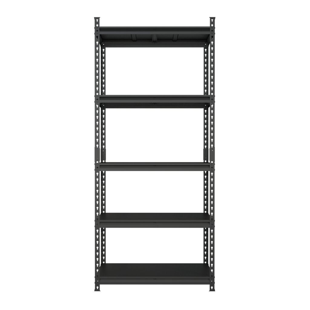 Univerzální celokovový bezšroubový regál vhodný do dílen, skladů, kanceláří, garáží či archívů. Vyroben z kvalitního ocelového plechu, povrchově upraven černou práškovou barvou. 5x přestavitelná police s výztuhou. Nosnost police 175 kg. Rozměry regálu (v x š x hl.) 1830 x 800 x 500 mm. Dodáván demontovaný.