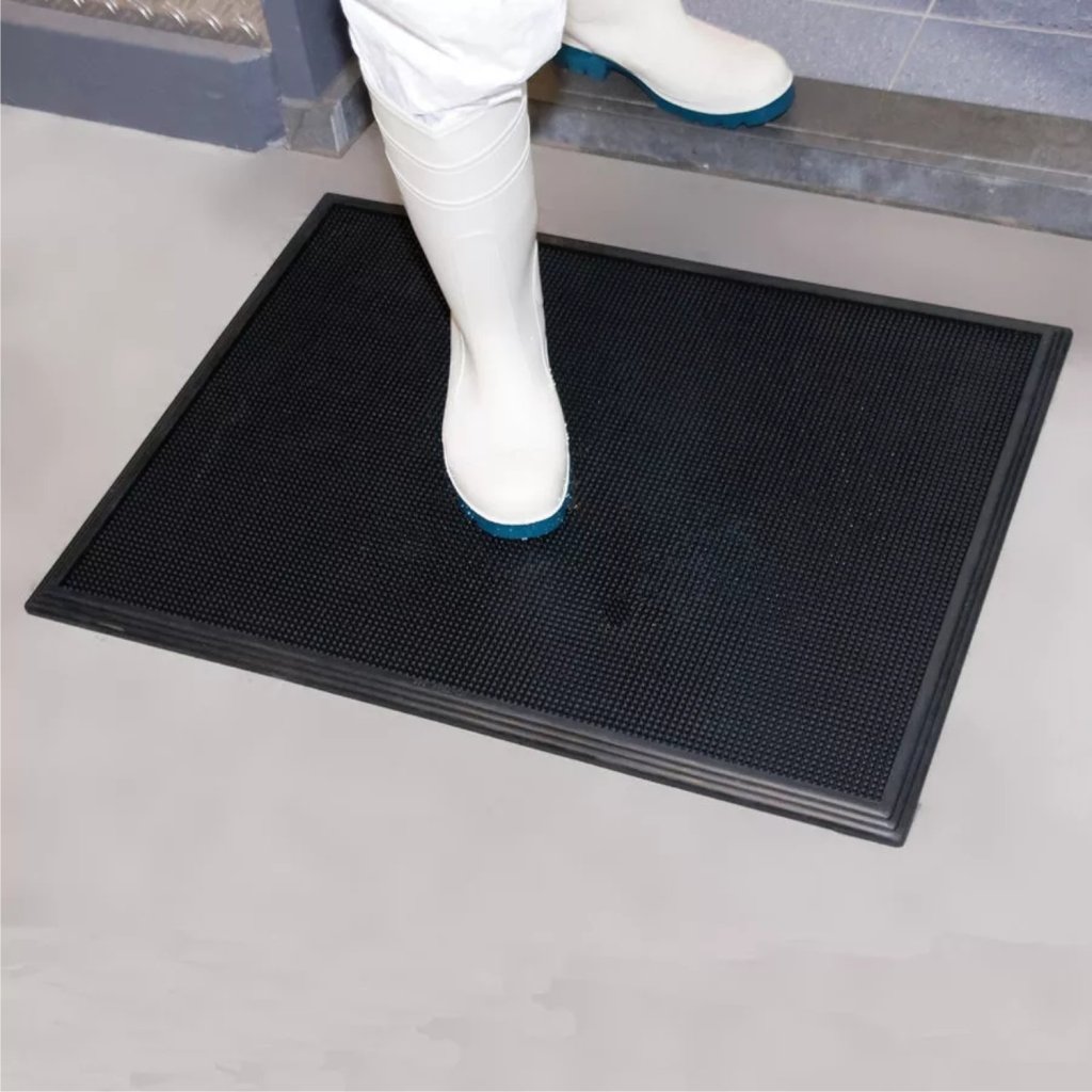 Černá gumová dezinfekční hygienická rohož Sani-Trax čistí a dezinfikuje podrážky obuvi. Tisíce pružných gumových prstíků odstraní celý popis a parametry
