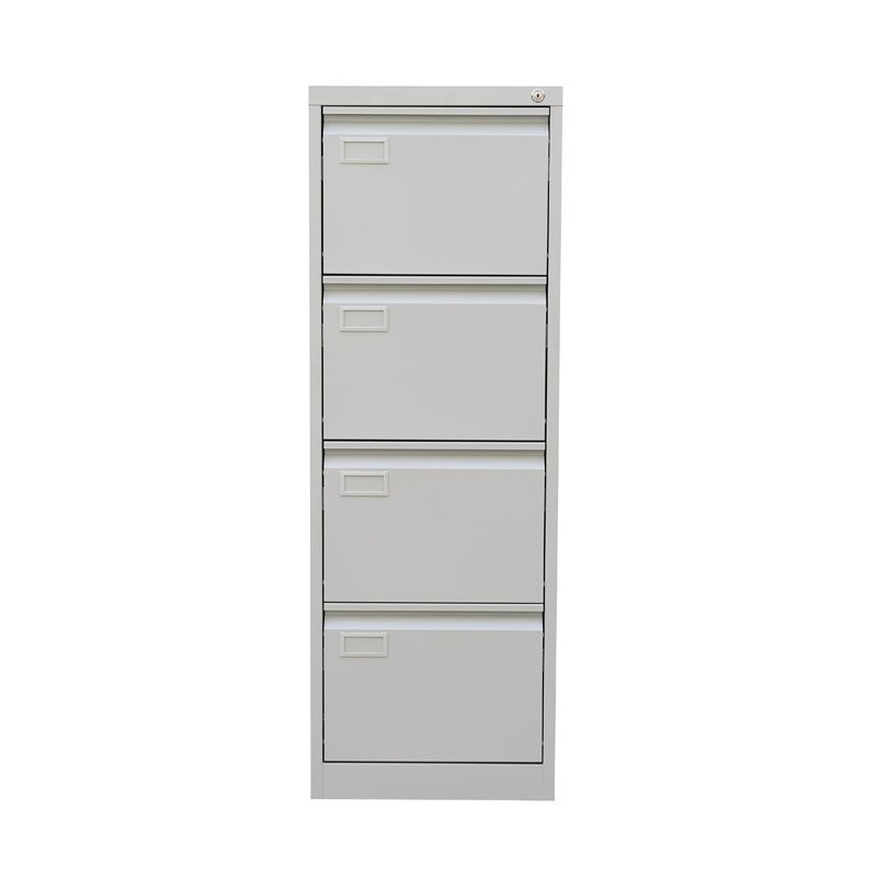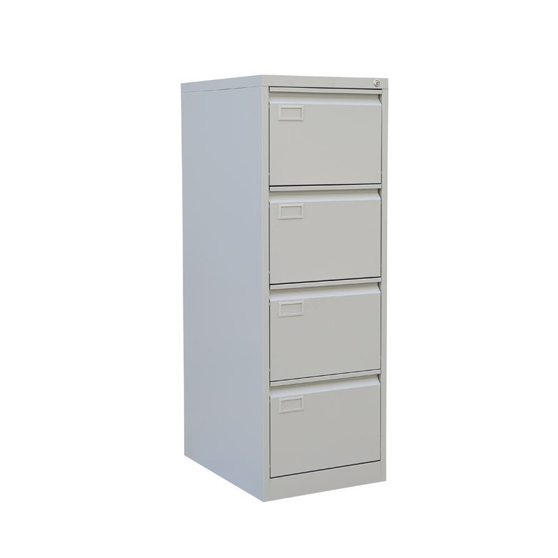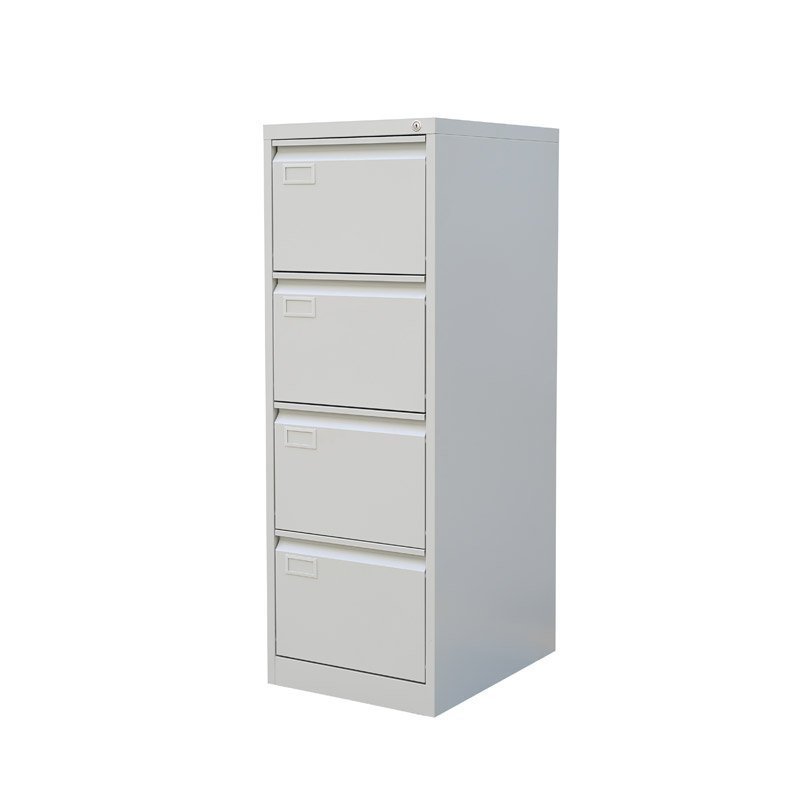 Čtyřzásuvková demontovaná kartotéka z ocelového plechu tloušťky 0,6 mm. Výška 1320 x šířka 460 x hloubka 620 mm, centrální zámek, plný výsuv. Pro dokumenty nebo závěsné desky formátu A4. Barva bílá RAL 9003/imitace světlé dřevo.