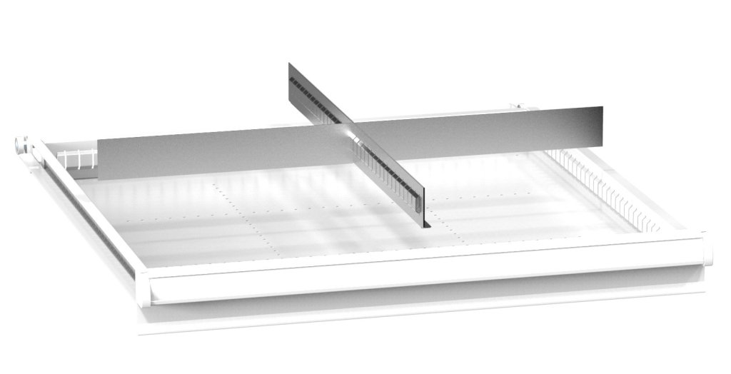 Dělení zásuvek kovové, 4 pole, pro zásuvky ZB (vnitřní rozměr zásuvky 612 x 612 mm). Pro výšku čela zásuvky 200 - 250 mm.