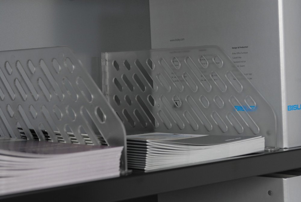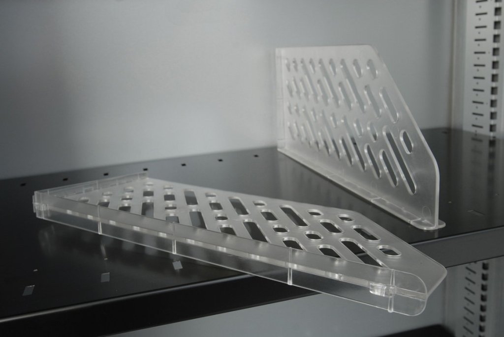 Rozdělníky pro polici BSS (sada 5 ks). Vyrobeno z transparentního plastu. Výška 152/50 mm x šířka 23 mm x hloubka 385 mm. Upevňují se do otvorů v polici typ BSS. Samotná police BSS je vhodná pouze do roletových skříní Bisley Essentials typ YETB10XX (šířka 1000 mm), dvoudveřových skříní Bisley Essentials typ YECB09XX (šířka 914 mm) a demontovaných dvoudveřových skříní typ KC.
