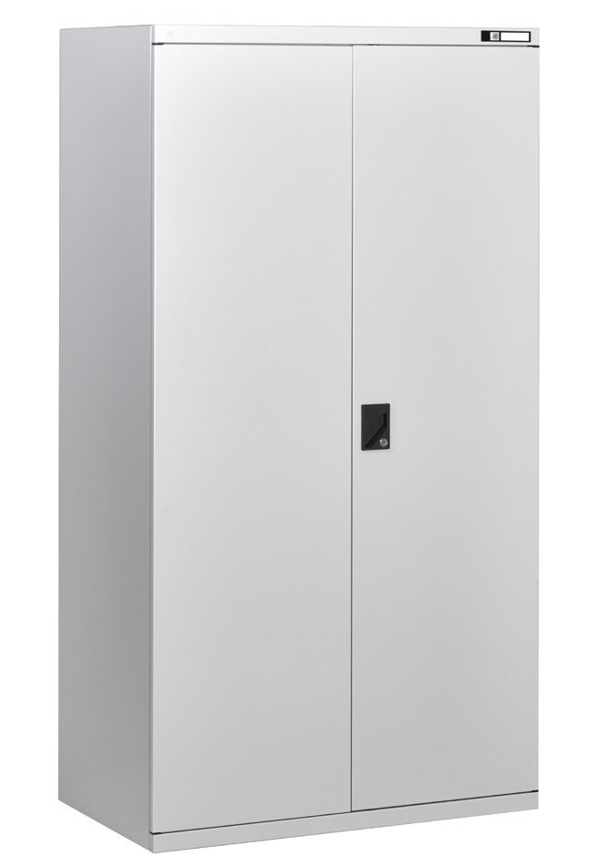 Skříň s křídlovými dveřmi, 4x police stavitelná po 25mm (pozink), 2x zásuvka ZCE 100, plná dvířka s výztuhami pro perfo, nosnost 600 kg. Výška 1950 x šířka 1044 x hloubka 655 mm.