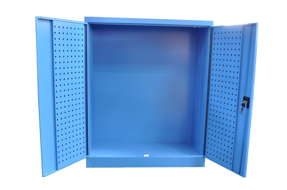 Dílenská skříň pro plastové boxy bez vybavení. Výška 1150 x šířka 950 x hloubka 400 mm.