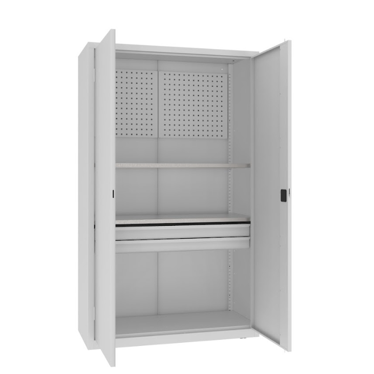 Dílenská skříň s křídlovými dveřmi v. 1990 x š. 1200 x h. 500 mm.