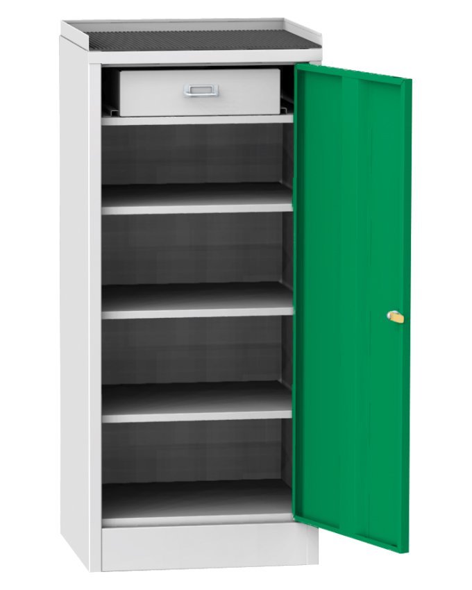 Dílenská skříňka na nářadí šířka 450, výška 1030, hloubka 400 mm. S gumou na horní ploše a okrajem proti přepadávání materiálu. celý popis a parametry
