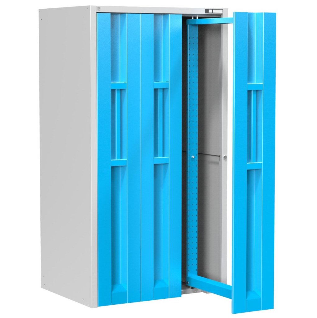 Dílenská vertikální skříň s výsuvnými dveřmi. Bez vnitřního vybavení (viz Můžete si dokoupit). Výška 1950 x šířka 1044 x hloubka 790 mm, hmotnost 142 kg, celková nosnost 1200 kg.
