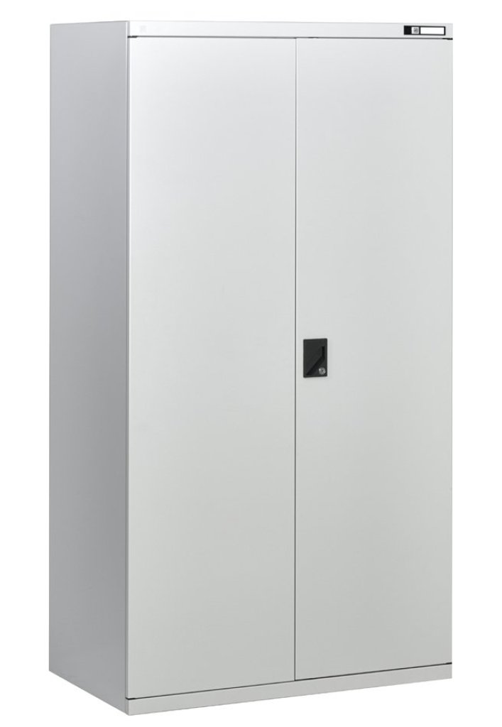 Korpus skříně s křídlovými dveřmi, perforace po 25mm pro výškové nastavování polic, plná dvířka s výztuhami pro perfo, nosnost 600 kg. Výška 1950, šířka 1044, hloubka 655 mm. Možno dovybavit policemi, zásuvkami a perfo panely - viz" Můžete si dokoupit".