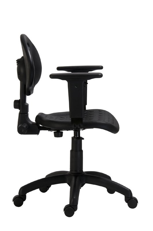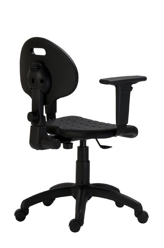 Polyuretanová dílenská židle, asynchronní mechanismus, nastavitelná výška opěráku, plynový píst. Kolečka nebo kluzáky, možnost zvýšeného sezení s kruhovou oporou pro nohy. Kříž plast nebo chrom. Skladem v provedení bez područek, s kolečky, se standardním plastovým křížem a standardním pístem.