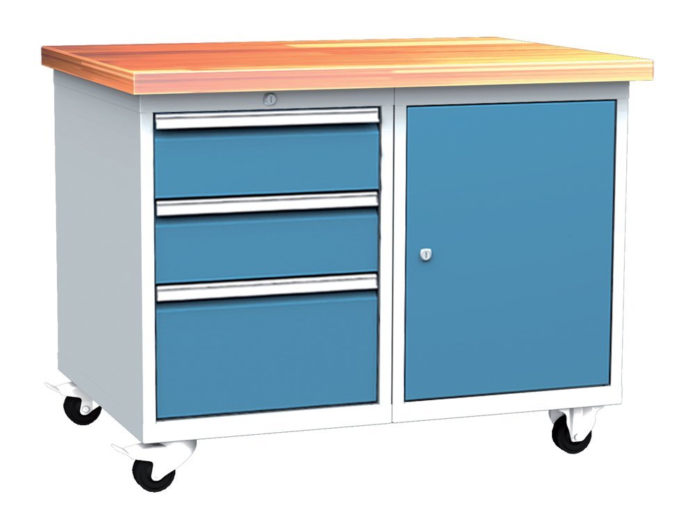 Dílenský servisní vozík, šířka 1050, výška 800, hloubka 750 mm. Nosnost korpusu 300 kg, nosnost zásuvky 80 kg, nosnost police 60 celý popis a parametry