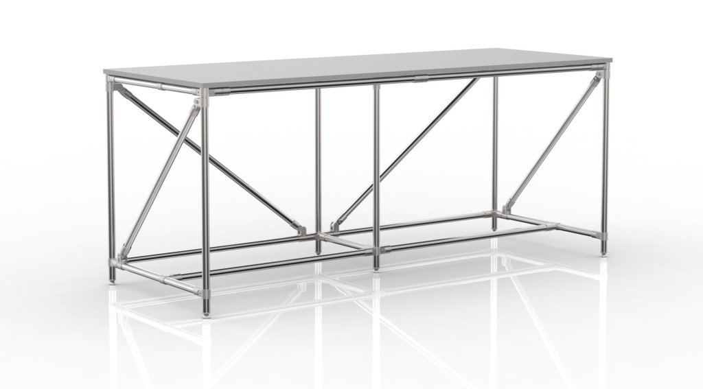 Dílenský stůl z trubkového stavebnicového systému s pracovní lamino deskou tloušťky 18 mm a čtyřmi stavitelnými nožičkami. Nosnost celý popis a parametry
