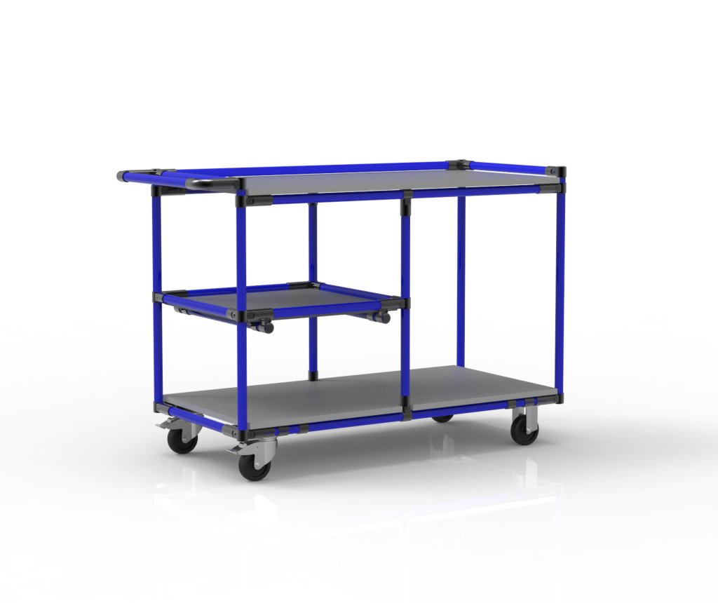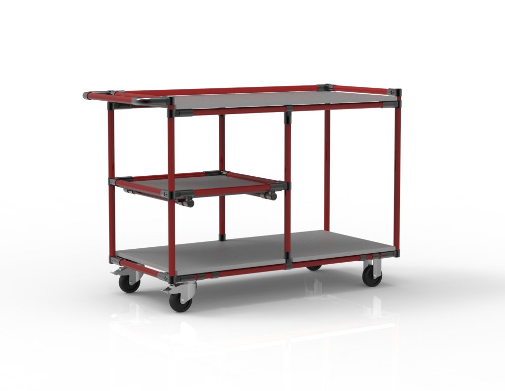 Dílenský pracovní vozík vyrobený z trubkového stavebnicového systému. Tento vozík je vybaven deskou z laminované dřevotřísky o celý popis a parametry