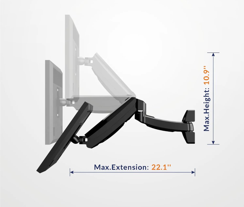 Rameno pro monitory WLB503 určené pro průmyslová a výrobní pracoviště. Kompatibilní se všemi stoly s nástavbou a s možností montáže na zeď. Ideální pro obrazovky úhlopříčky 17"–30" . Maximální nosnost 9 kg.