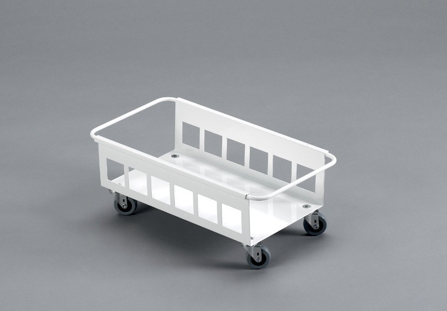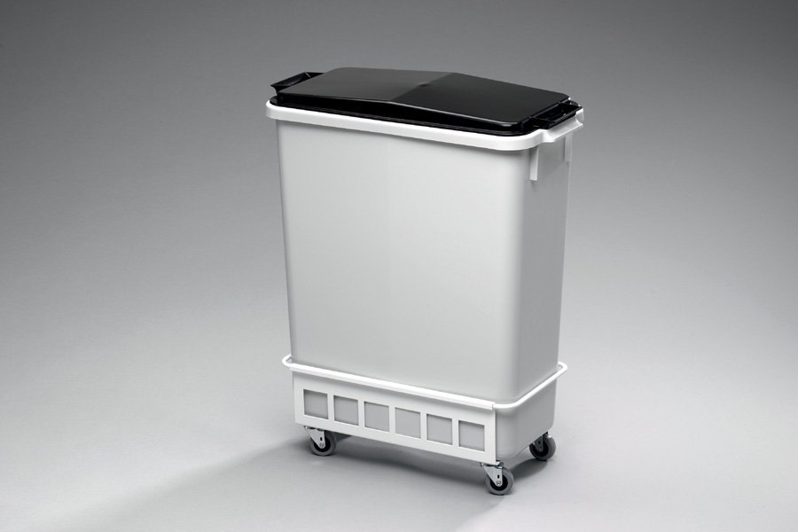 Pojízdný podstavec z bíle lakovaného kovu pro jeden odpadkový koš DURABIN 60 se čtyřmi kolečky. celý popis a parametry