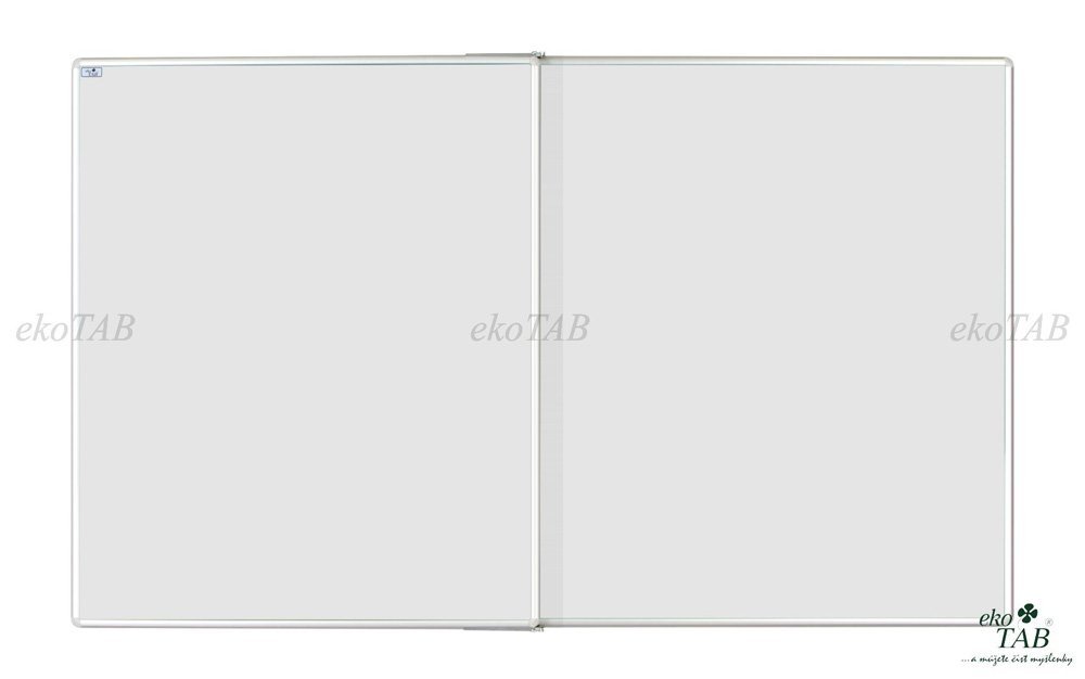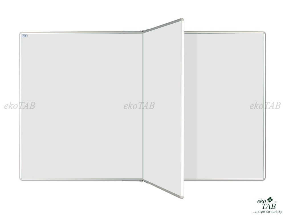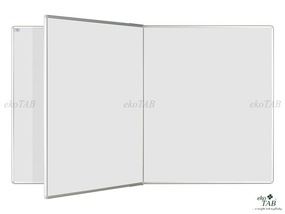 Magnetická keramická tabule se středním otočným křídlem. Rám z eloxovaného hliníku v přírodním odstínu, plastové rohy. Dodáváno celý popis a parametry