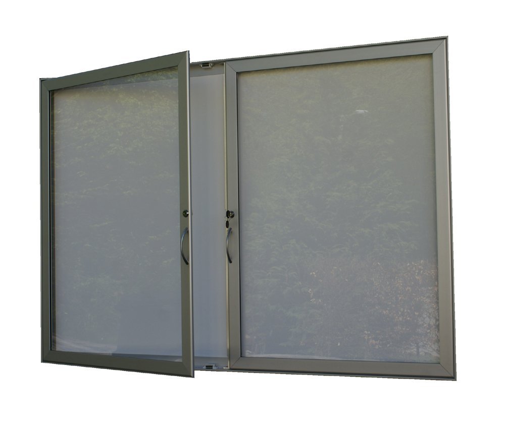 Hliníková magnetická informační vitrína je tvořena celohliníkovým rámem s eloxovaným povrchem, dvířky s odolným plexisklem a magnetickým plechem jako pozadí vitríny. Je vhodná na interiérové ale i exteriérové použití. Rozměry v. 1000 x š. 1040 x hl. 40 mm. Pro vyvěšení 12 ks papíru formátu A4.