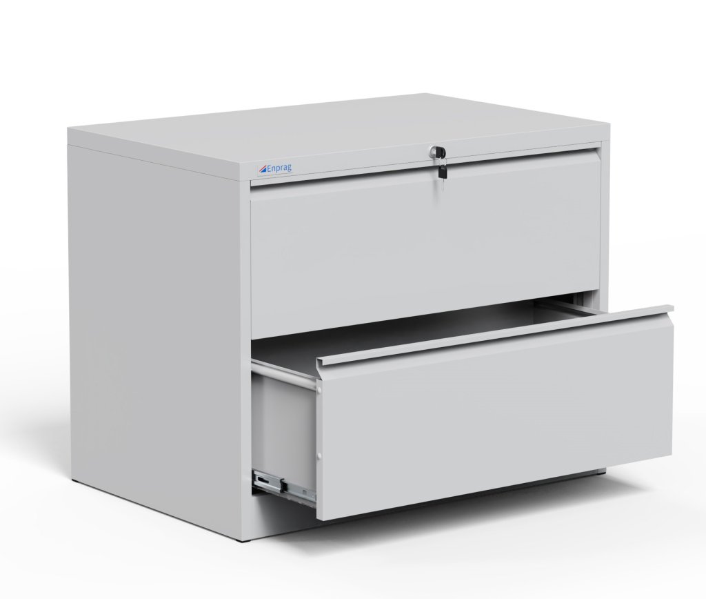 Dvouzásuvková demontovaná kartotéka z ocelového plechu tloušťky 0,6 mm. Výška 706 x šířka 400 x hloubka 600 mm, centrální zámek, plný výsuv. Pro dokumenty nebo závěsné desky formátu A4. Barva šedá nebo korpus tmavě šedý a zásuvky bílé.