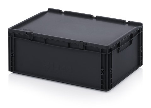 ESD Euro přepravka s víkem je jednoduše stohovatelná. Zamezuje vzniku elektrostatického náboje. Spec. průtokový odpor / povrchový celý popis a parametry