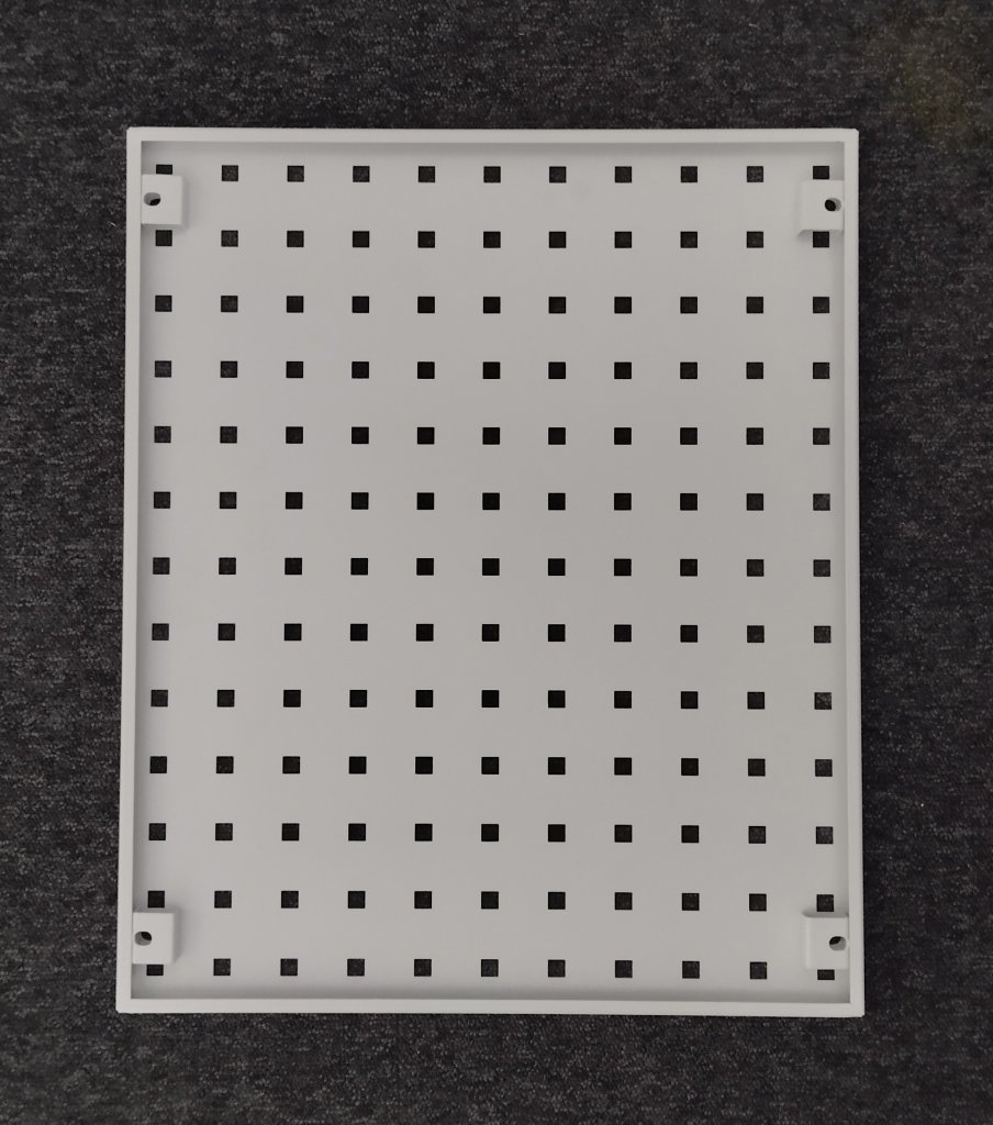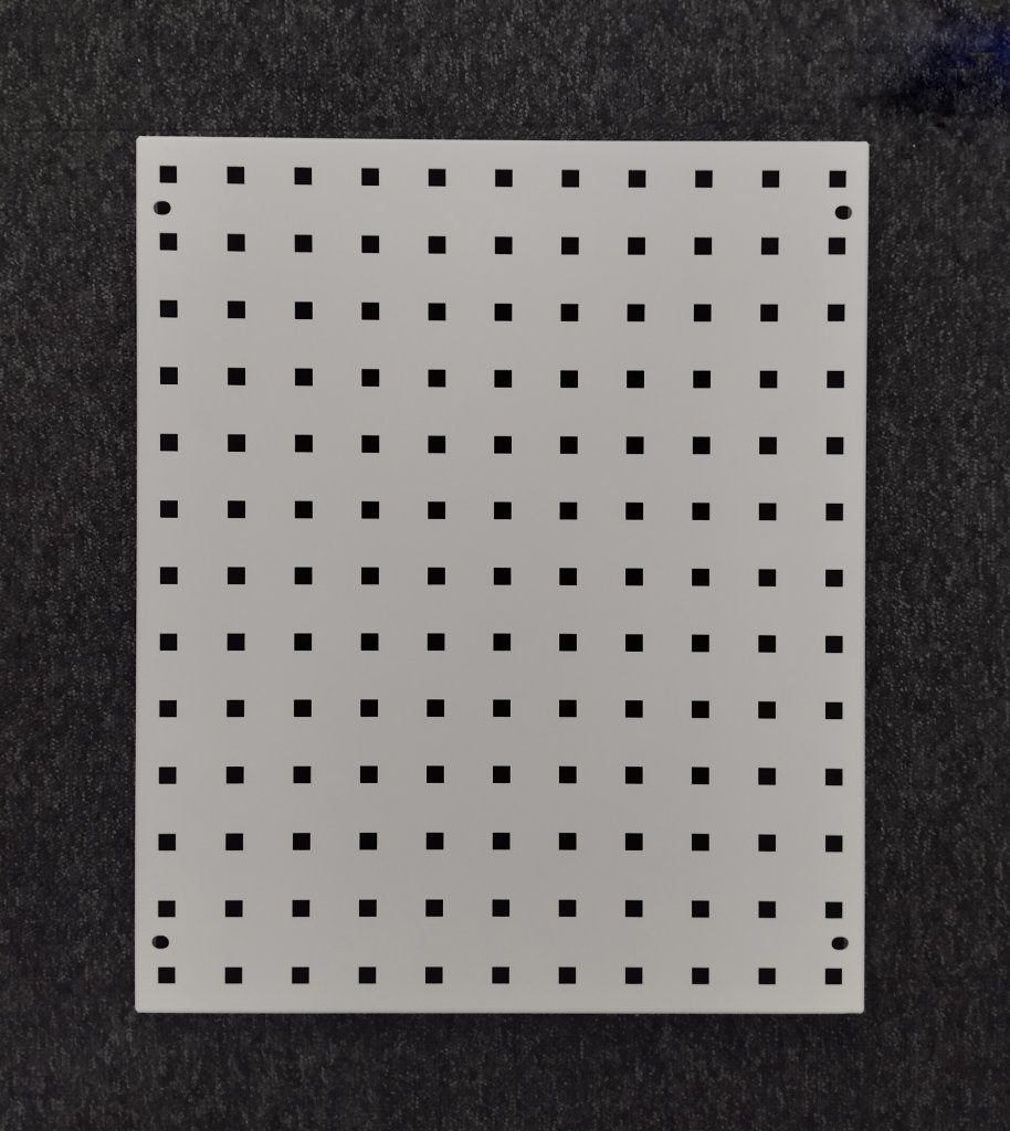 ESD perfopanel se zaoblenými hranami. Otvory pro uchycení do trubkového systému či na zeď. Ideální pro zavěšování držáků nářadí a celý popis a parametry