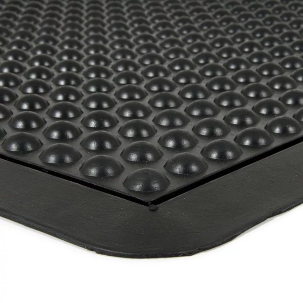 Gumová protiúnavová rohož, výška 15 mm, šířka 0,9 m, délka 0,6 m. Vhodná pro provozy vyžadující dlouhodobější stání pracovníků, celý popis a parametry