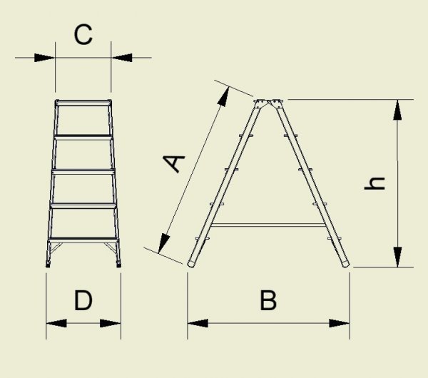 Schůdky hliníkové oboustranné Eurostyl, počet nášlapů 2x5, maximální výška 1,03 m, šířka 461 mm. Nosnost 150 kg. Schůdky 922, 923 - DODÁNÍ DO 5 DNŮ.