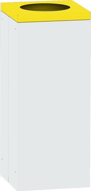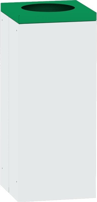 Hranatý stabilní koš vhodný pro třídění odpadu. Výška 700 x šířka 295 x hloubka 295 mm, objem 57 l. Barva koše světle šedá RAL 7035, víko s kruhovým vhozem o ø 200 mm v různých barvách pro rozlišení druhu odpadu. Pouze pro vnitřní použití.
