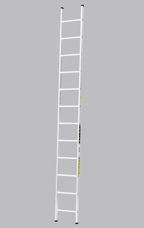 Jednoduchý opěrný žebřík Forte. Počet příček 12, délka 3,54 m, šířka 412 mm, koncovky žlutočerné. Tyto žebříky jsou vyrobené tak, aby splňovaly vysokou odolnost a spolehlivost při zachování co možná nejmenší hmotnosti. Maximální nosnost 150 kg.