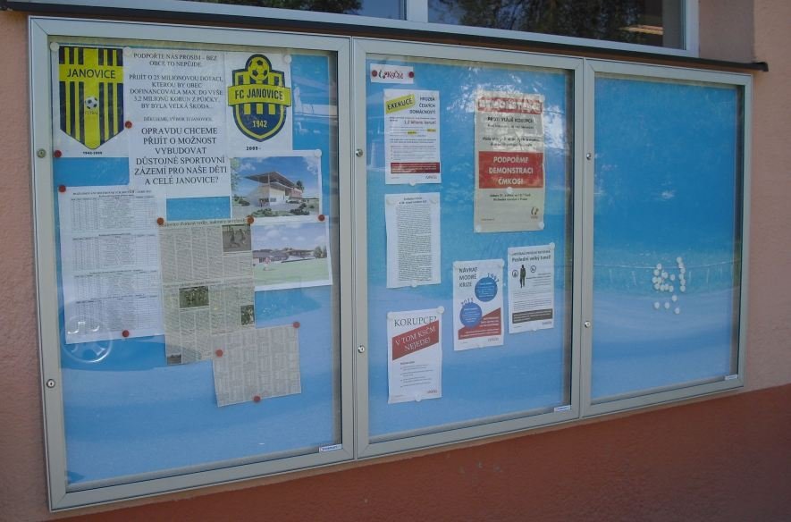 Dvoukřídlá vitrína vhodná jak do exteriéru tak do interiéru. Odolná proti vandalismu. Povrchová úprava konstrukce vysokovrstvým eloxem nebo práškovou vypalovací barvou. Základní barevné provedení bez příplatku - konstrukce stříbrná, pozadí bílé. Rozměry v. 705 x š. 1050 x hl. 40 mm.