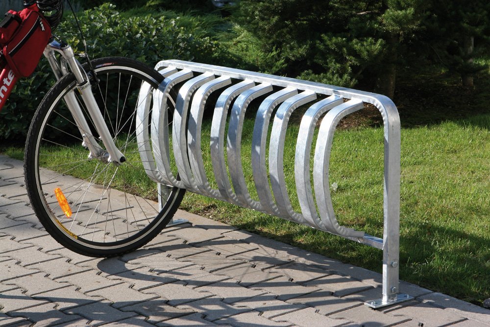 Stojan pro 5 kol ve dvou variantách - k zabetonování do země, nebo ke kotvení. Povrch žárově zinkován - vysoká životnost stojanu. Šířka stojanu 1250 mm, hmotnost 14 kg, šířka stání 82 mm.