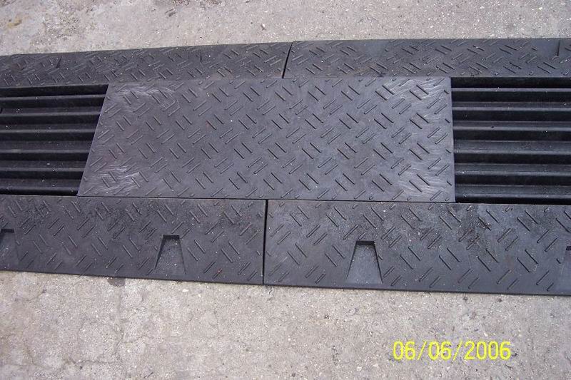 Kabelový most s vložkou, barva černá. Slouží k ochraně kabelů, hadic, trubek, které jsou položeny přes vozovku, ve výrobních provozech, výstavy, kulturní akce atd. Chemicky stálé, nesnadno hořlavé, snadno se udržují. Rychlá montáž a demontáž, protiskluznost a stabilita.
