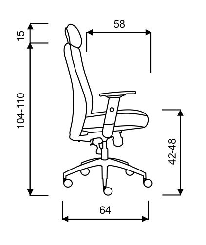 Kancelářská židle otočná, opěrák vysoký výškově nastavitelný, synchronní mechanika SYS s bočním nastavením tuhosti opěradla, kříž nylon černý, kolečka 60 mm, plynový píst, cena bez područek.