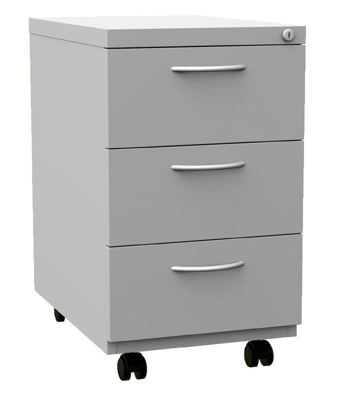 Třízásuvkový kancelářský stolový kontejner mobilní, výška 650, šířka 404, hloubka 600 mm. Barva korpusu RAL 7035 světle šedá. celý popis a parametry