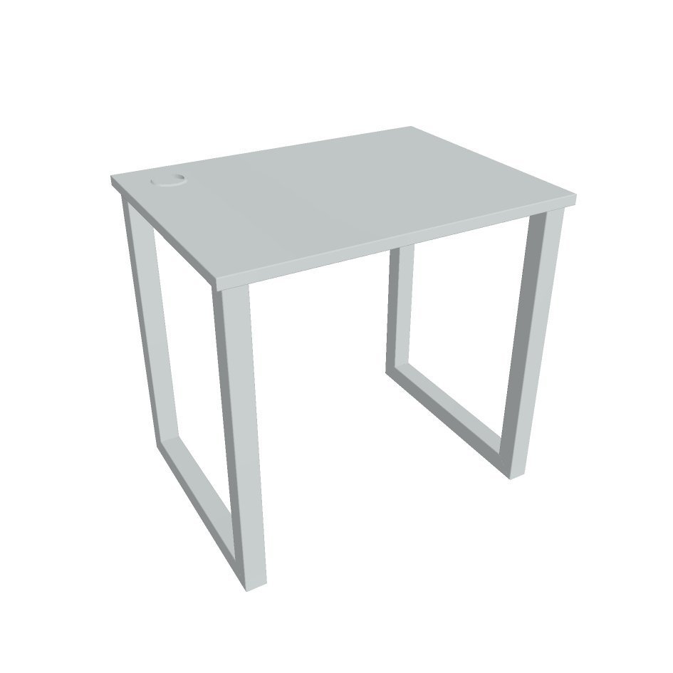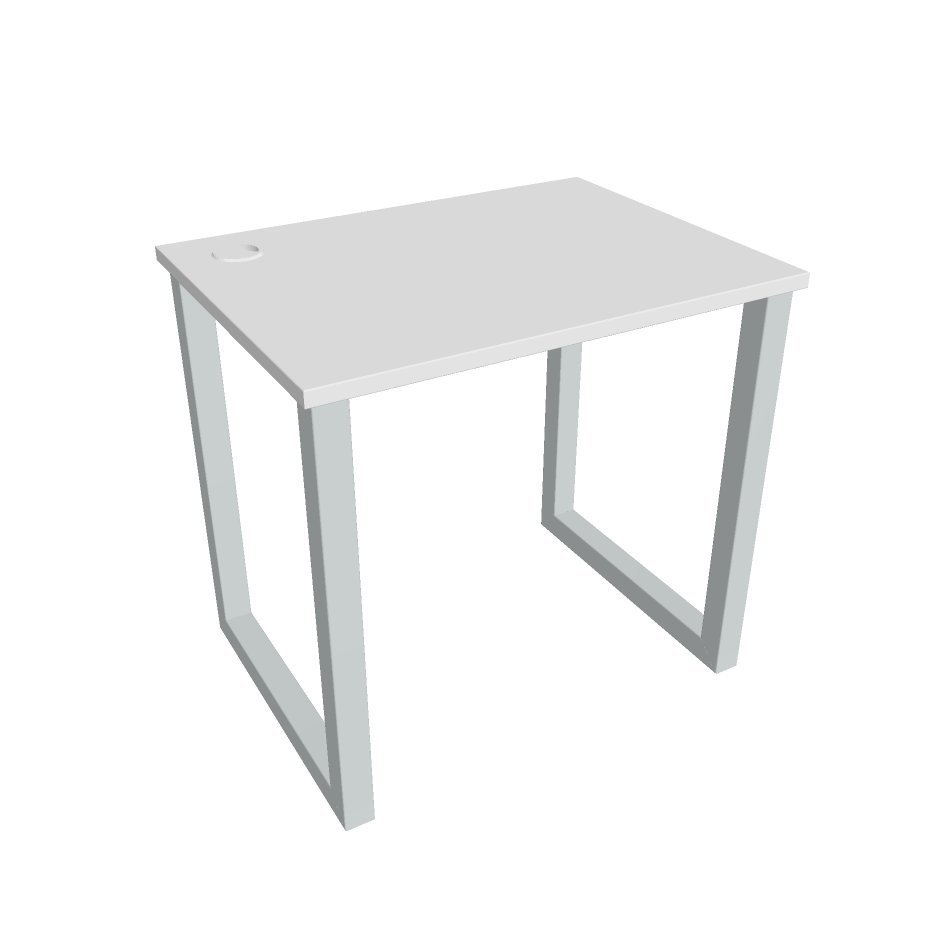 Kancelářský pracovní stůl UNI O o rozměrech 755 x 1200 x 800 mm. Pracovní deska je vybavena ABS hranou, která pomáhá chránit stoly před poškozením. Součástí stolů je praktická průchodka, která svede všechny kabely pod stůl, kde si s nimi poradí praktické držáky.