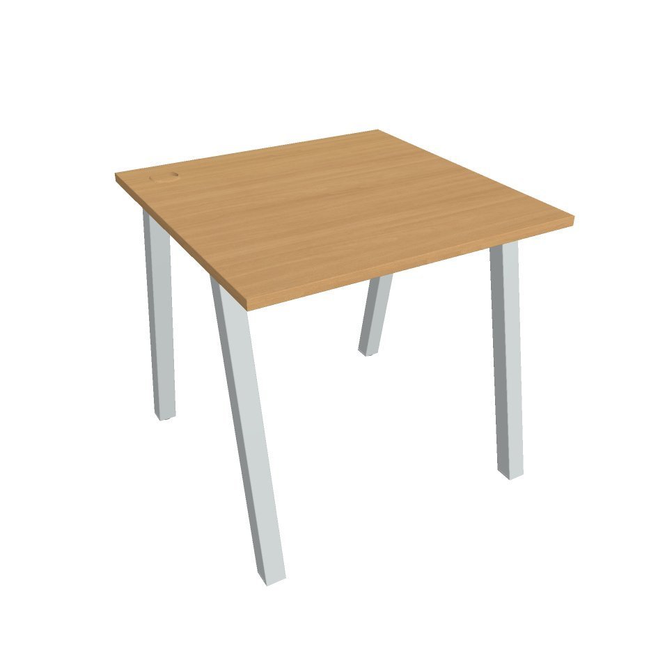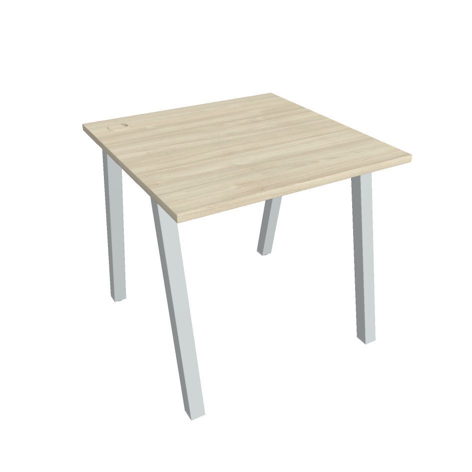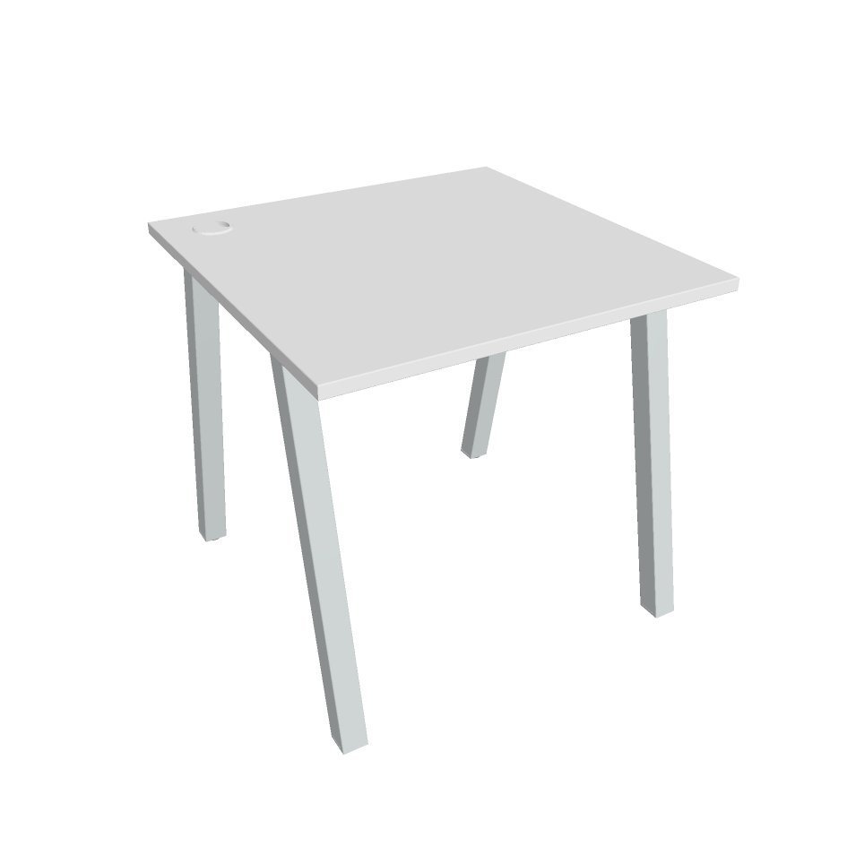 Kancelářský pracovní stůl UNI A o rozměrech 755 x 800 x 600 mm. Pracovní deska je vybavena ABS hranou, která pomáhá chránit stoly před poškozením. Součástí stolů je praktická průchodka, která svede všechny kabely pod stůl, kde si s nimi poradí praktické držáky.