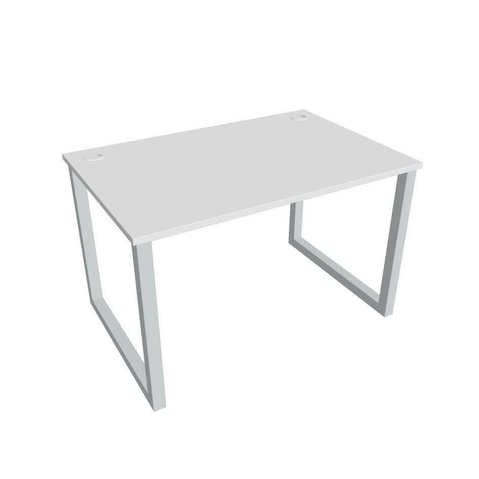 Kancelářský pracovní stůl UNI O o rozměrech 755 x 1200 x 600 mm. Pracovní deska je vybavena ABS hranou, která pomáhá chránit stoly před poškozením. Součástí stolů je praktická průchodka, která svede všechny kabely pod stůl, kde si s nimi poradí praktické držáky.
