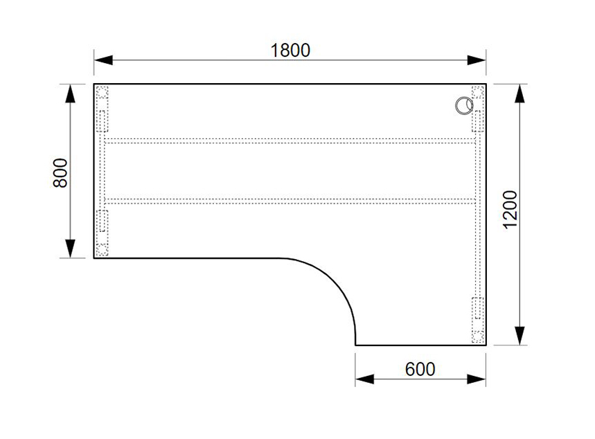 Kancelářský rohový stůl UNI A o rozměrech 755 x 1800 x 1200 mm. Pracovní deska je vybavena ABS hranou, která pomáhá chránit stoly před poškozením. Součástí stolů je praktická průchodka, která svede všechny kabely pod stůl, kde si s nimi poradí praktické držáky.