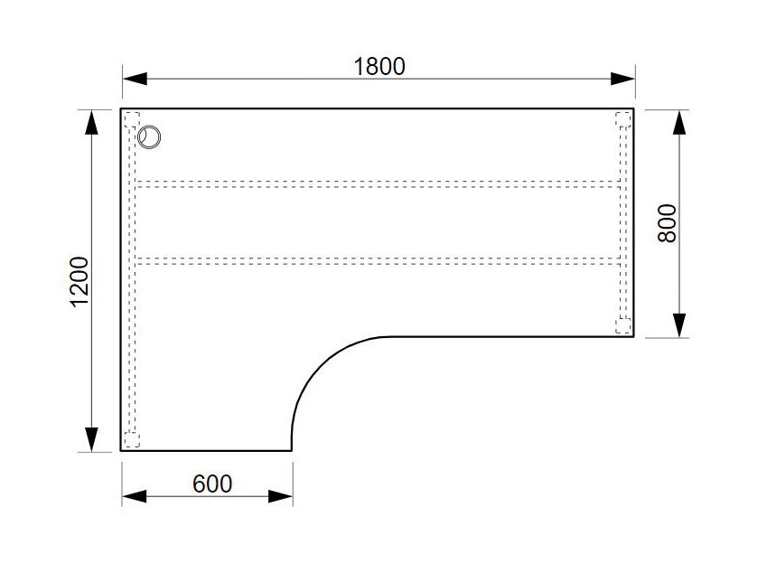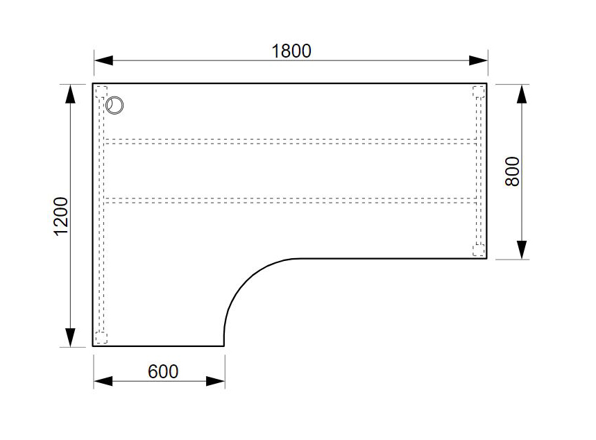 Kancelářský rohový stůl UNI A o rozměrech 755 x 1800 x 1200 mm. Pracovní deska je vybavena ABS hranou, která pomáhá chránit stoly před poškozením. Součástí stolů je praktická průchodka, která svede všechny kabely pod stůl, kde si s nimi poradí praktické držáky.