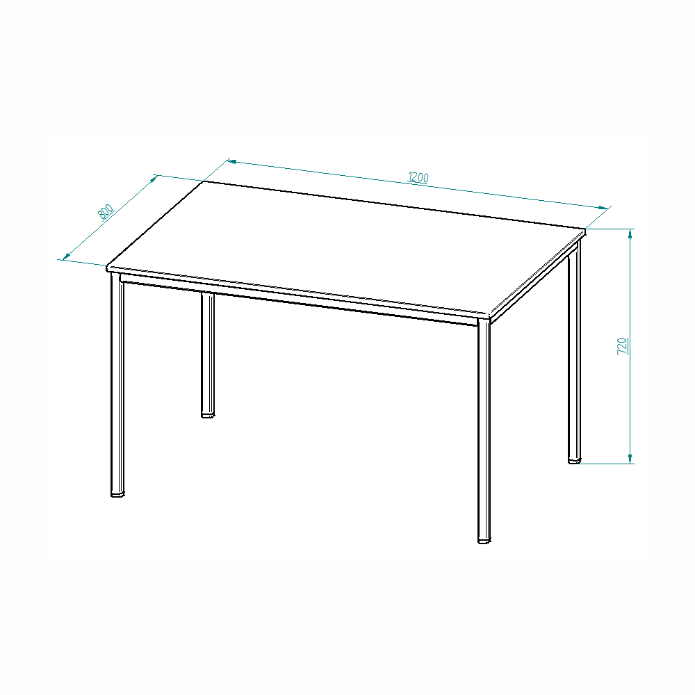 Kancelářský stůl na kovové podnoži, rozměr desky 800 x 800 mm, barva konstrukce a desky RAL 7035. Pracovní plocha je vyrobena z oboustranně laminované dřevotřískové desky (tl. 25 mm) lemované ABS hranou. Výška stolové desky 720 mm.