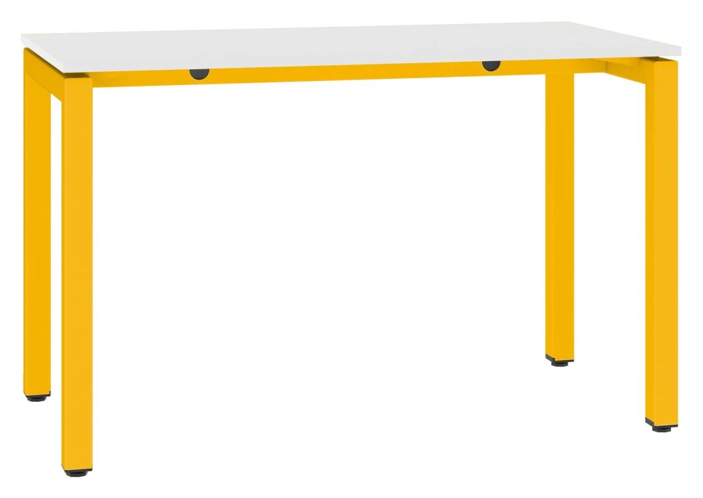 Designový stůl vhodný do kanceláří, jednacích místností a open-space. Konstrukce čtvercové profily 50 x 50 mm, barva na výběr z odstínů RAL. Lamino desky o síle 18 mm s hranou, barva desky na výběr. Nohy mají rektifikační patky umožňující výškové vyrovnání. Výška 745 - 770 mm, šířka 1200 mm, hloubka 800 mm. Demontovaný výrobek.