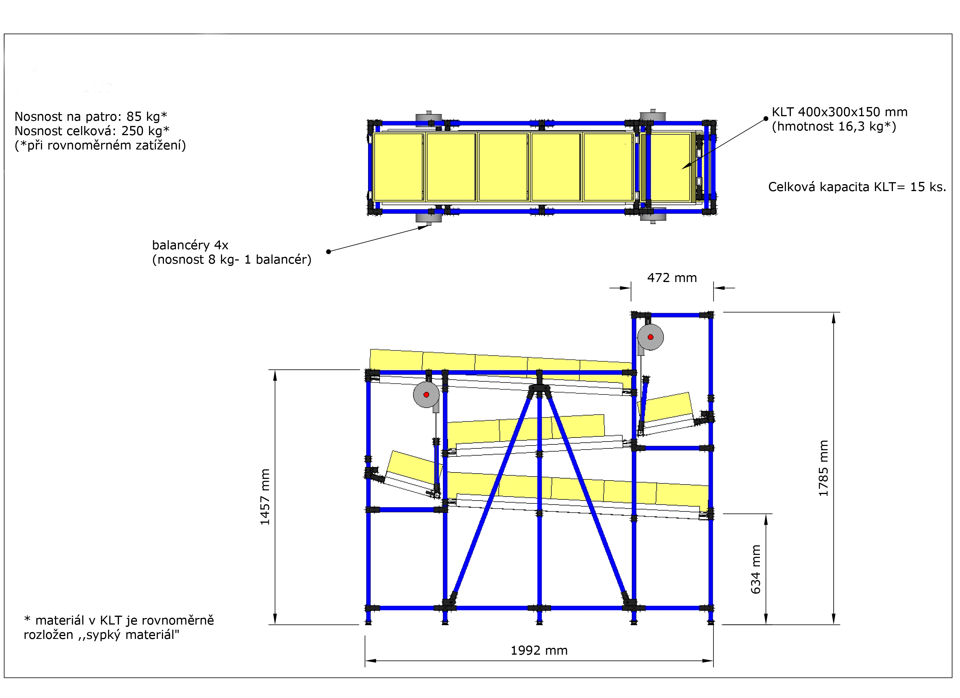 • vhodný pro přepravu KLT přepravek 400 x 300 x 150 mm