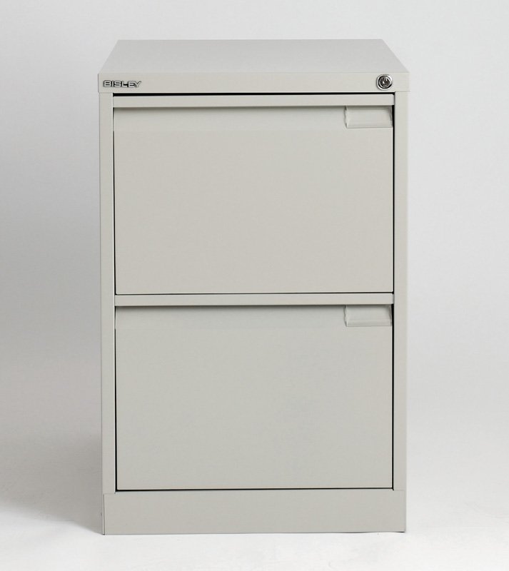 Dvouzásuvkové kovové kartotéky pro dokumenty nebo závěsné pořadače formátu A4 nebo Foolscap, šířka 413 nebo 470, výška 711, hloubka 622 mm, centrální zámek, různé barvy. V barvě světle šedé nebo béžové (v šířce 413 mm) skladem.