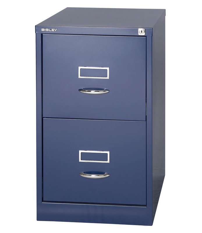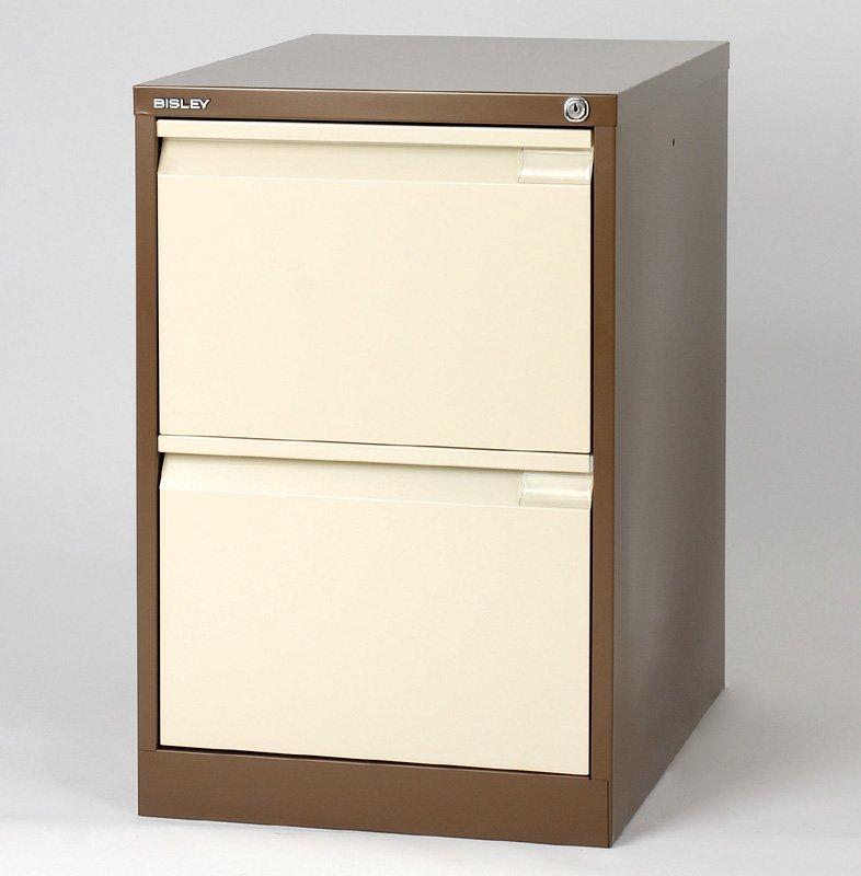 Dvouzásuvkové kovové kartotéky pro dokumenty nebo závěsné pořadače formátu A4 nebo Foolscap, šířka 413 nebo 470, výška 711, hloubka 622 mm, centrální zámek, různé barvy. V barvě světle šedé nebo béžové (v šířce 413 mm) skladem.