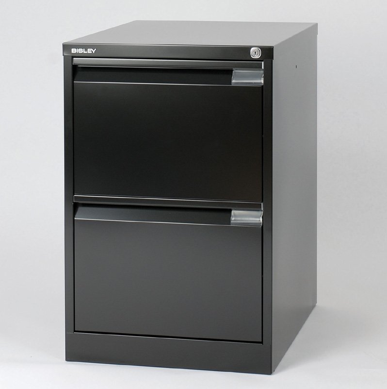Dvouzásuvková kovová kartotéka pro dokumenty nebo závěsné pořadače formátu A4 nebo Foolscap, šířka 470, výška 711, hloubka 622 mm,