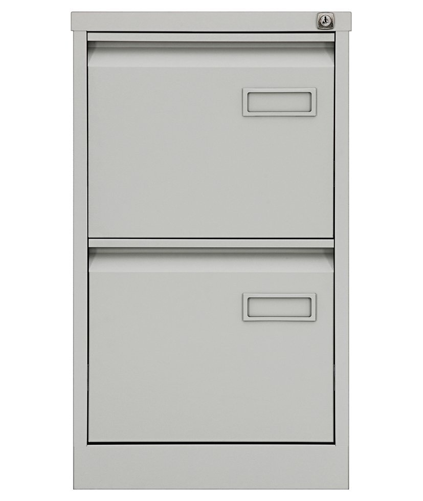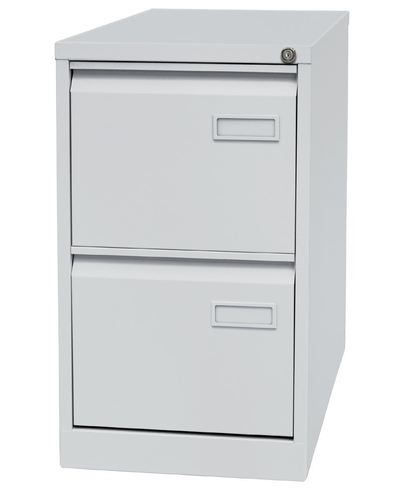Dvouzásuvková kovová kartotéka pro dokumenty nebo závěsné pořadače formátu Foolscap, šířka 470, výška 711, hloubka 622 mm, centrální zámek, různé barvy.