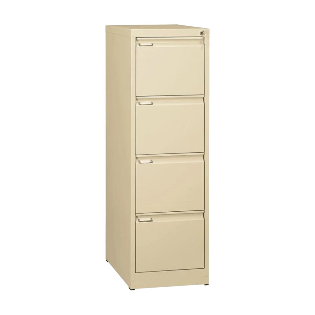 Kovová svařovaná kartotéka pro dokumenty formátu A4, čtyřzásuvková. Výška 1321, šířka 413, hloubka 622 mm, centrální zámek, plný výsuv. Konstruovaná pro ukládání závěsných kapes i pro volné dokumenty. V barvě béžové.
